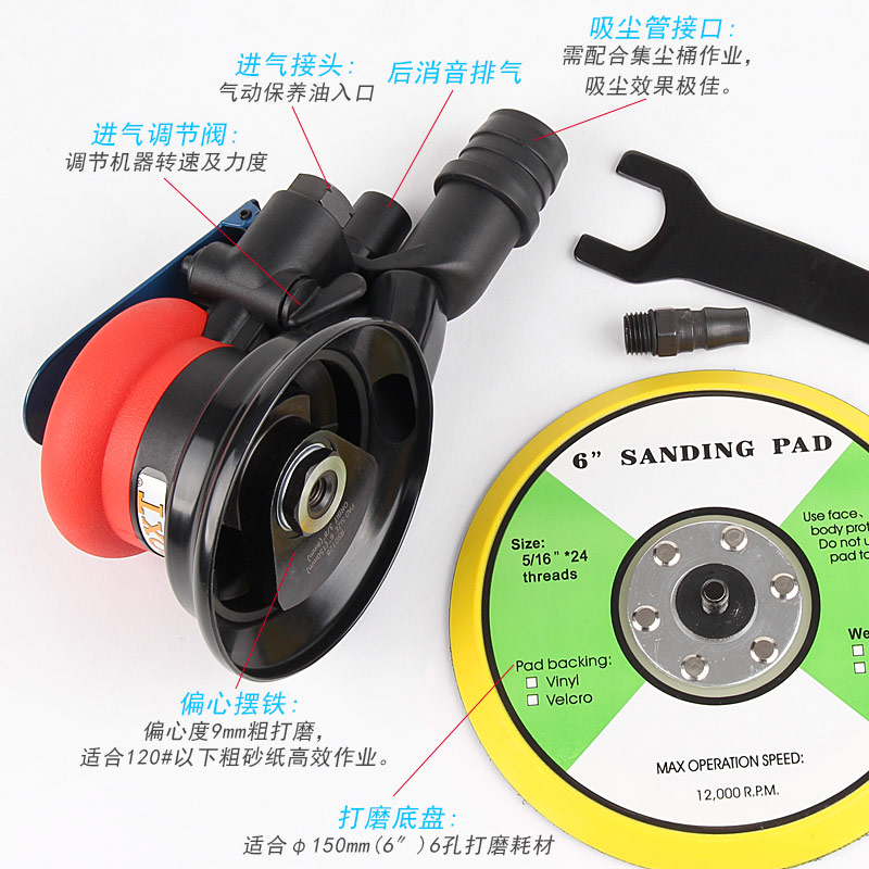 --粗磨偏心度幅度為9.5mm,扭力大,切削能力更大,適合重力打磨。工件一般幅面較大,要求打磨速度快,粗糙的打磨表面,如:玻璃鋼,UV,原子灰等材質(zhì)比較硬的工件,所用砂紙規(guī)格120#以下;