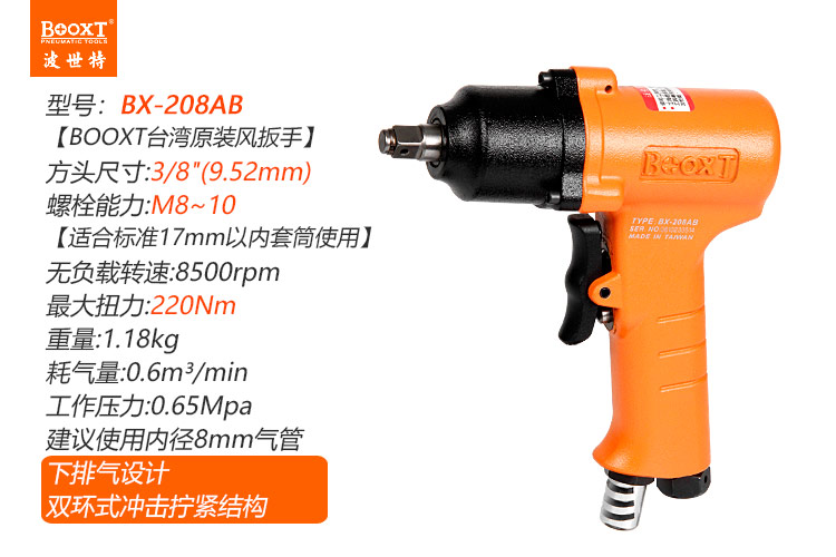 東莞市強(qiáng)勁五金工具有限公司提供臺灣BOOXT波世特品牌氣動工具,氣動扳手BX-208AB廠家直銷,首件享特價。咨詢熱線:4008301980