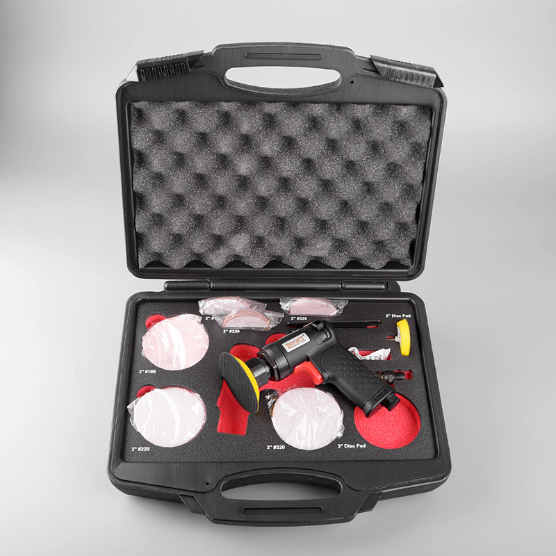 1.帶偏心式,裝砂紙打磨出來的效果是“霧”狀,帶細(xì)小亂絲的小紋路,適合后工藝需要做噴砂、烤漆,增加附著力。(標(biāo)配一般為3mm偏擺,可選配1.5mm,0.75mm偏擺度)
