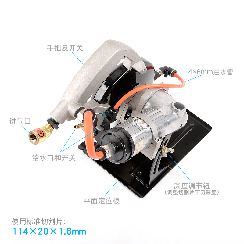 以壓縮空氣為動力,沒有觸電的危險(傳統(tǒng)用電,石材切割都需要注水,用電非常不安全)。