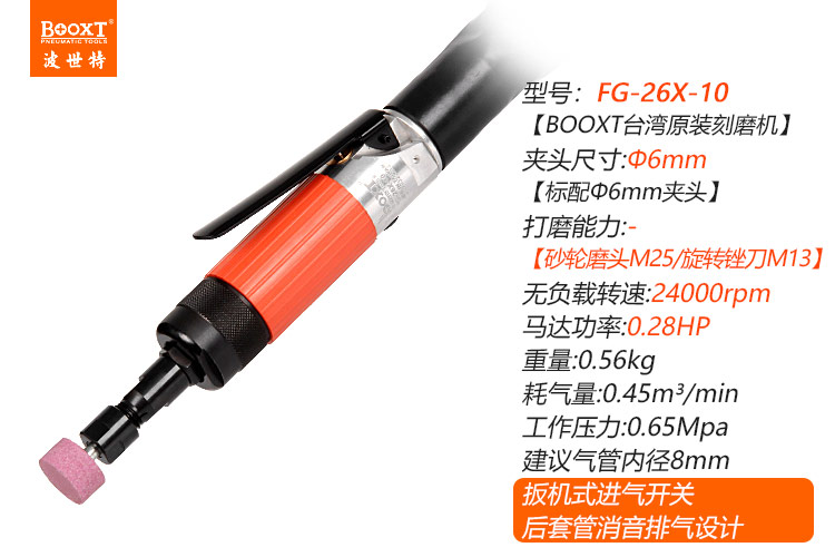 東莞市強(qiáng)勁五金工具有限公司提供臺灣BOOXT波世特品牌氣動工具,帶消音刻磨機(jī)FG-26X-10廠家直銷,首件享特價(jià)。咨詢熱線:4008301980