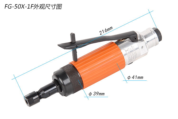 • 產(chǎn)品參數(shù): 夾頭能力:M3,6 (標(biāo)配M6) 馬達(dá)功率:0.45HP 空載轉(zhuǎn)速:18000rpm 工具能力:砂輪磨頭M32,旋轉(zhuǎn)銼刀M22 耗 氣 量:0.45m3/min 全 長(zhǎng):216mm 重 量 : 0.7kg 【扳機(jī)式/帶消音】