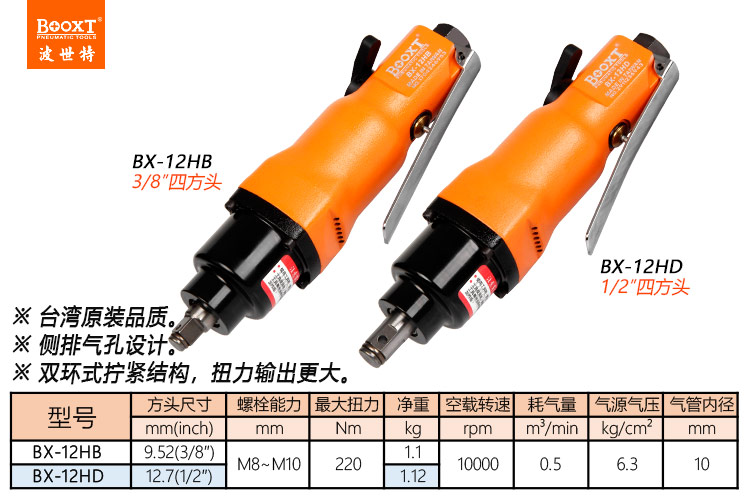 東莞市強(qiáng)勁五金工具有限公司提供臺(tái)灣BOOXT波世特品牌氣動(dòng)工具,直式氣動(dòng)扳手BX-12HD廠家直銷,首件享特價(jià)。咨詢熱線:4008301980