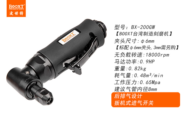東莞市強(qiáng)勁五金工具有限公司提供臺(tái)灣BOOXT波世特品牌氣動(dòng)工具,彎頭風(fēng)磨機(jī)BX-200GW廠家直銷(xiāo),首件享特價(jià)。咨詢熱線:4008301980