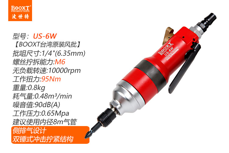 東莞市強勁五金工具有限公司提供臺灣BOOXT波世特品牌氣動工具,氣動螺絲刀US-6W廠家直銷,首件享特價。咨詢熱線:4008301980