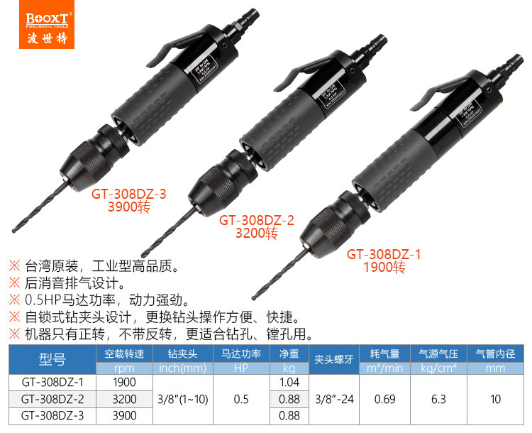 東莞市強勁五金工具有限公司提供臺灣BOOXT波世特品牌氣動工具,自鎖夾頭風鉆GT-308DZ-2廠家直銷,首件享特價。咨詢熱線:4008301980