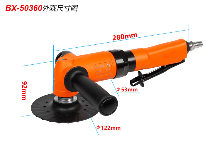 • 產(chǎn)品參數(shù): 底盤尺寸:125mm*孔22mm【5寸】 馬達功率:1.6HP 空載轉(zhuǎn)速:12000rpm 耗 氣 量:1.15m3/min 全 長:280mm 重 量:1.7kg 【工業(yè)型】