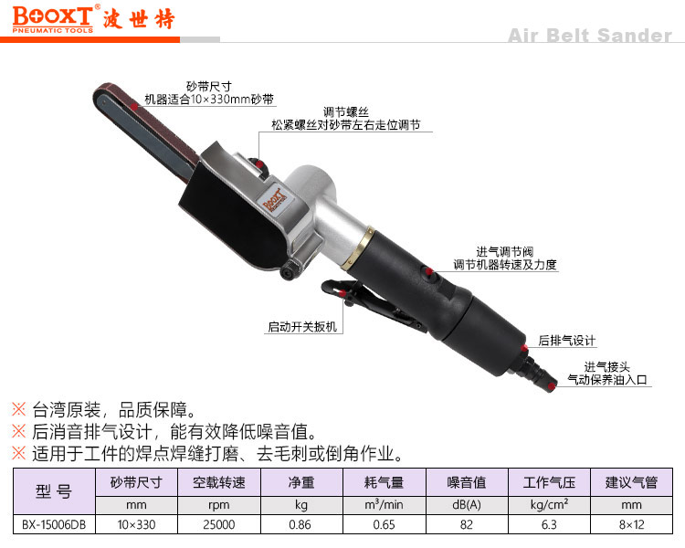 東莞市強勁五金工具有限公司提供臺灣BOOXT波世特品牌氣動工具,BX-15006DB小型氣動砂帶機廠家直銷,首件享特價。服務(wù)熱線:4008301980