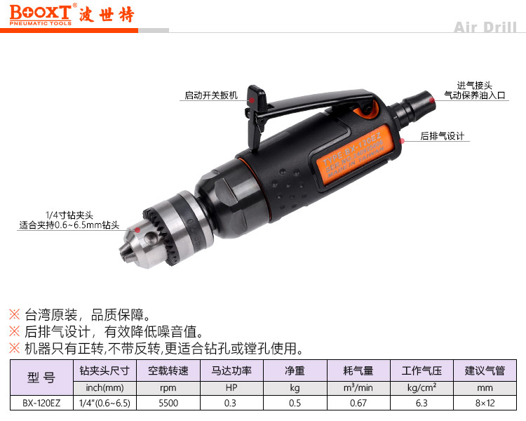 東莞市強(qiáng)勁五金工具有限公司提供臺(tái)灣BOOXT波世特品牌氣動(dòng)工具,超短直式氣動(dòng)鉆BX-120EZ廠家直銷,首件享特價(jià)。咨詢熱線:4008301980